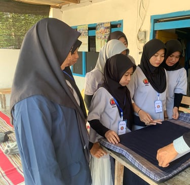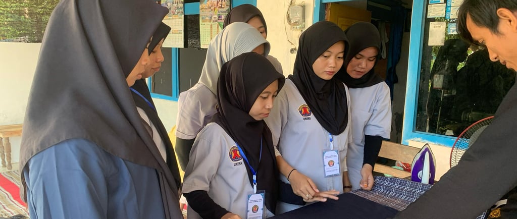 Pelatihan UMKM Odheng Lanpello yang di selenggarakan di rumah produksi odheng desa Pademawu Barat di ikuti juga oleh peserta KKN Universitas Madura